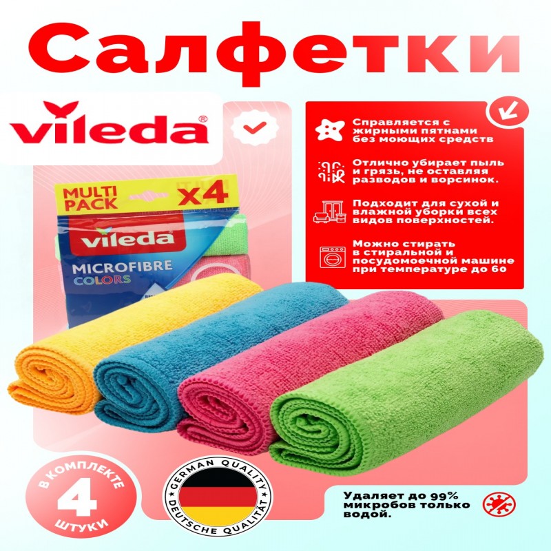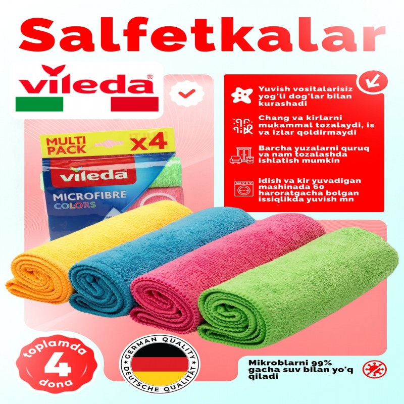 Vileda Microfibre Colors tozalash uchun 4 dona mikrofiber matolar toplami ¥50000.0 |